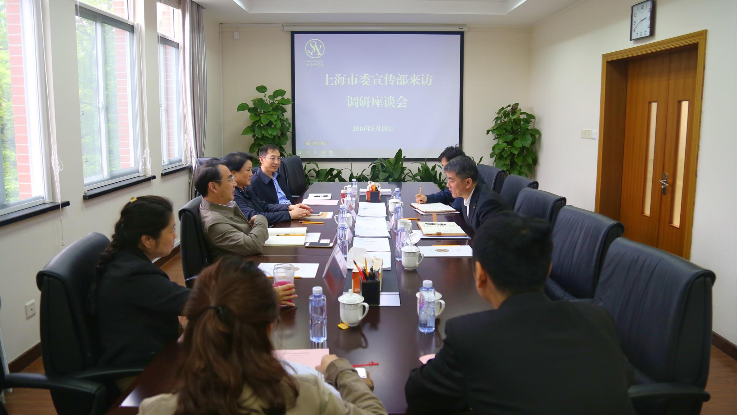 5月10日下午,上海市委宣传部副部长燕爽一行到上海研究院调研。beat365唯一官网党委副书记、副校长、上海研究院第一副院长李友梅、上海研究院常务副院长文学国接待了燕部长一行,并在上海研究院进行座谈。文学国副院长主持了座谈会。