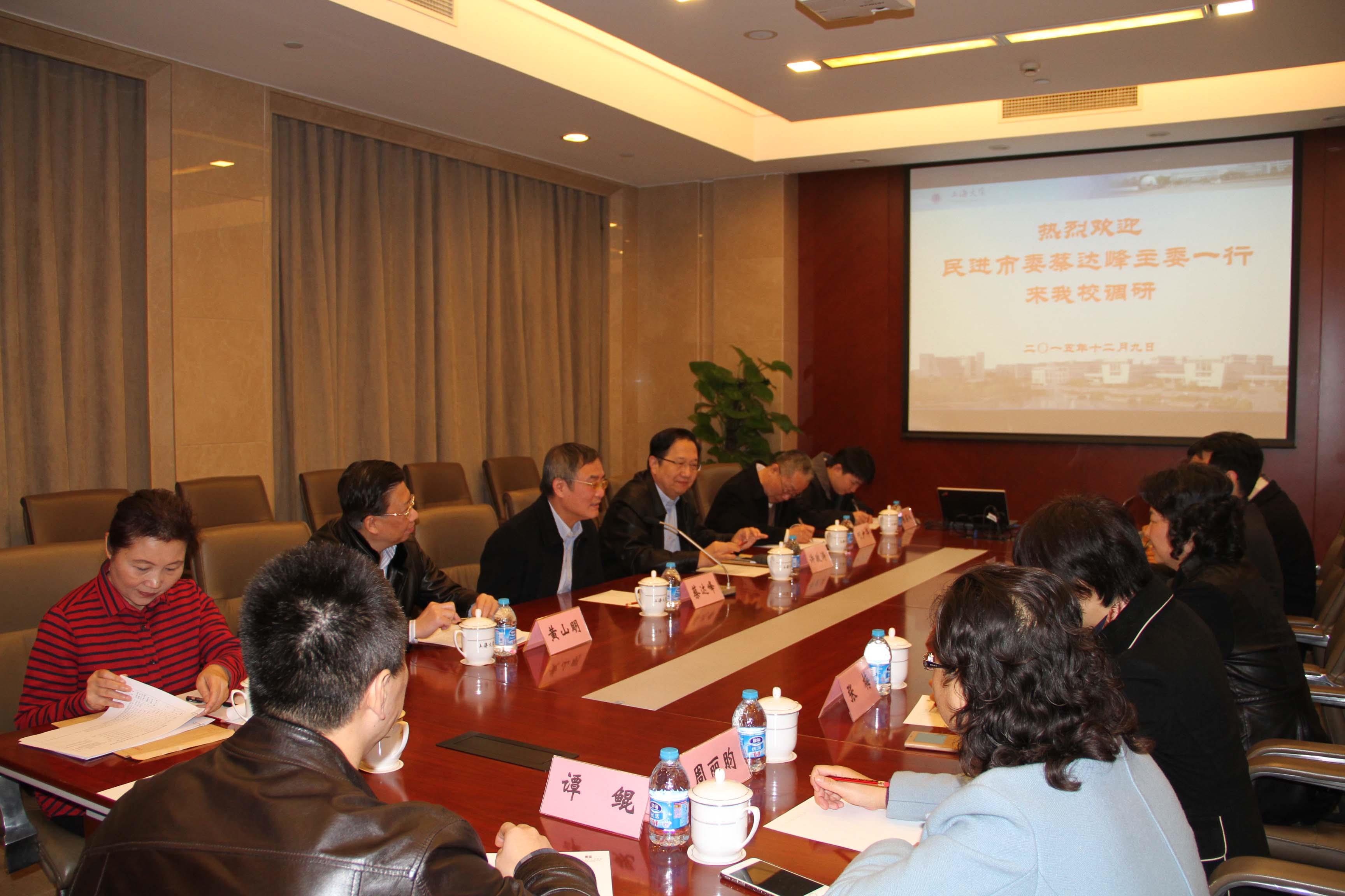 12月9日上午,民进中央副主席、上海市人大常委会副主任、民进上海市委主委蔡达峰一行来到beat365唯一官网,就民进上大委员会工作进行调研。校党委书记罗宏杰,校党委副书记、副校长李友梅在调研前会见了来宾并进行了座谈交流。蔡达峰副主席对beat365党委对民进上大委员会工作的支持、关心和协助表示感谢,希望学校党委继续关心和帮助民进上大委员会的发展。罗宏杰书记对民进市委来校调研表示欢迎,他充分肯定了民进上大委员会在学校建设和发展中发挥的作用和做出的贡献,表示学校党委将继续支持民进上大委员会的工作。
