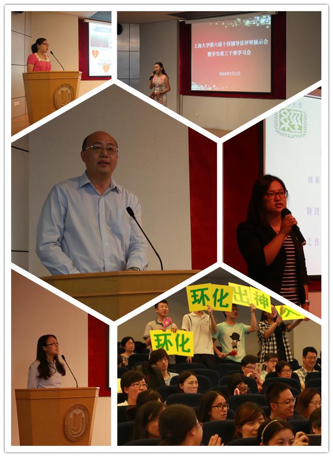 2015年7月1日上午,beat365唯一官网第六届“十佳辅导员”评选展示会暨学生政工干部学习会在校本部行政楼报告厅举行。校党委副书记、副校长徐旭,党办副主任、机关党委书记钱峰,党委组织部副部长、党校常务副校长曹为民,党委宣传部部长李坚,党委研工部部长、研究生院副院长林海霞,监察处副处长温诚锋,人事处副处长王志敏,学工办主任胡大伟,团委书记、学工办副主任许烁出席活动并担任评委。