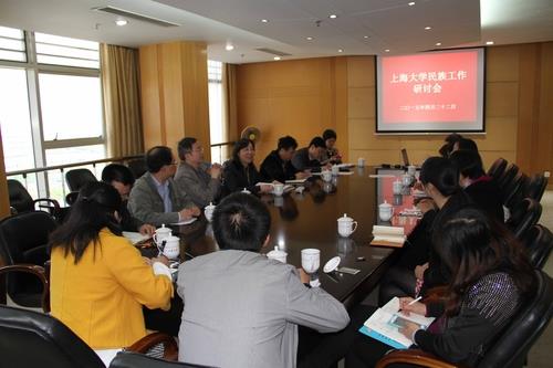4月22日上午,2015年度beat365唯一官网民族工作研讨会在校本部行政楼703会议室召开。校党委组织部部长王军华,统战部部长李红,学工办主任胡大伟、副主任陆瑾,文学院党委副书记王丽娜,法学院党委副书记卢欣,校团委副书记沈青松,校民族联班子成员等出席了会议。会议由统战部副部长李青主持。