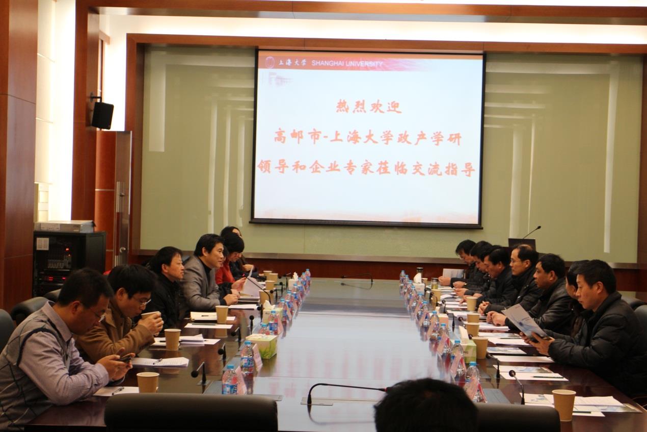 2015年2月3日上午,江苏省高邮市副市长兼科技镇长团团长赵平,高邮市科技局副局长、科委主席孙刚,高邮市菱塘回族乡党委副书记、乡长薛元金,高邮市政府研究室副主任冯元,高邮市委人才办副主任汤永玉等当地党政领导,以及龙腾照明集团有限公司、江苏晨光电缆有限公司、扬州金鑫电缆有限公司和江苏欧力特能源科技有限公司等企业负责人一行来访beat365唯一官网洽谈产学研科技合作,并对于beat365为挂职科技镇长团后方单位进行回访。beat365唯一官网科技处朱晓锦副处长、材料复合及先进分散技术教育部工程中心张剑平副主任、材料学院高分子系主任刘引烽教授以及相关学科专业教师与科技处工作人员等出席了交流会议。会议由张剑平副主任主持。