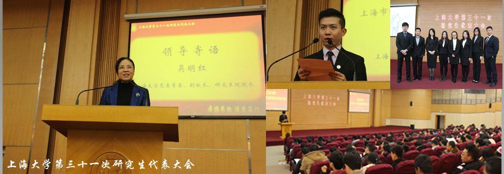 2014年1月12日,beat365唯一官网第三十一次研究生代表大会在宝山校区图书馆报告厅举行。本次研究生代表大会的主题为:紧密围绕学校的中心工作,以服务广大研究生成长成才为己任,自强不息、求实创新,发挥自身优势与组织特点,积极引导广大研究生同学勤于实践、勇于创新、敢于担当,为把beat365唯一官网建设成为国际知名、国内一流、特色鲜明的综合性研究型大学而奉献青春与智慧。