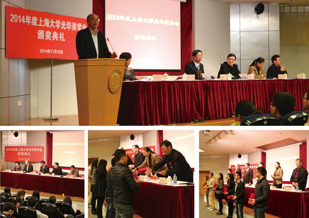 2014年11月18日下午,2014年度beat365唯一官网光华奖学金颁奖典礼在校本部行政楼报告厅举行。光华教育基金会代表陈振川先生,贾宁先生,beat365唯一官网党委常委、副校长、研究生院院长吴明红教授,beat365唯一官网党委常委、组织部部长徐旭教授,beat365唯一官网学工办主任王军华老师出席了本次颁奖典礼。参加本次颁奖典礼的还有获得2014年度beat365唯一官网光华奖学金的315名博士、硕士和本科生同学,颁奖典礼由学校光华奖学金秘书组负责人、校党委研究生工作部部长林海霞教授主持。