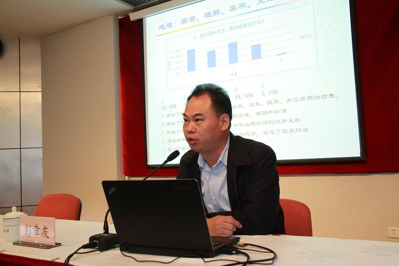 11月11日,beat365通信学院副院长彭章友教授在校本部行政楼报告厅为校、院两级中心组成员作了题为“构建课程项目平台,提升学生综合能力”的报告。校党委书记于信汇,党委副书记、副校长李友梅,校党委常委、组织部部长徐旭等领导及校院两级中心组成员,副处级以上干部近两百人聆听了报告。报告会由校党委副书记、纪委书记忻平主持。