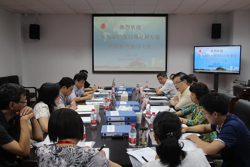 2014年8月28日下午,由上海档案局副局长刘志成带队的上海市档案局执法检查组来到beat365唯一官网档案馆,对2011-2013年beat365唯一官网贯彻实施档案法律法规的情况进行执法检查。beat365唯一官网汪敏副校长及档案馆相关负责人出席了本次行政执法检查汇报会。