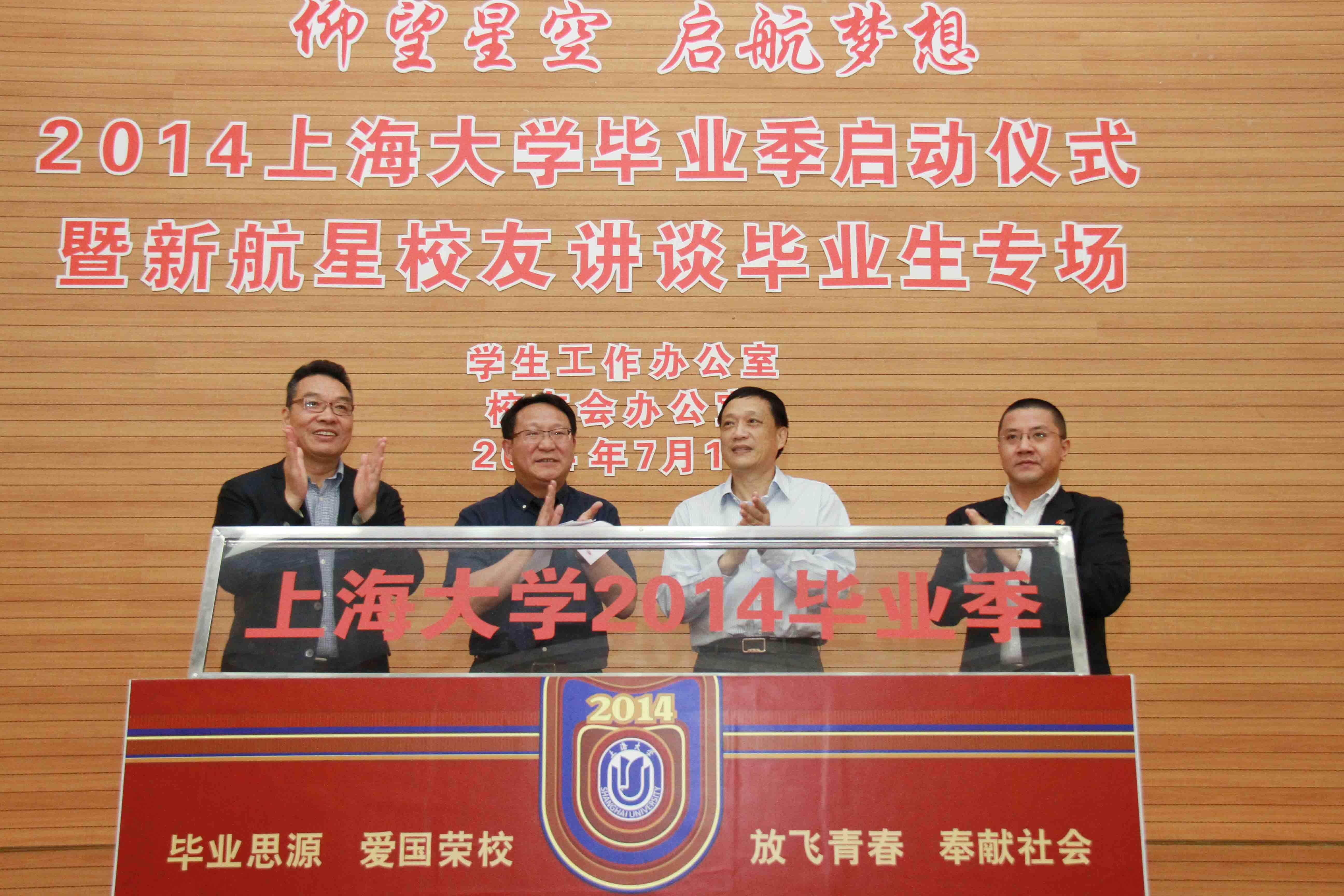 又是一年毕业季,又有一批学有所成的上大学子将要离开校园。在这个充满新的机遇与挑战的日子里,罗宏杰校长与三位事业有成的校友一起拉起代表毕业季启动的拉杆,为2014年毕业季揭开了序幕,未来的一周时间里,各个学院毕业典礼将陆续举行。