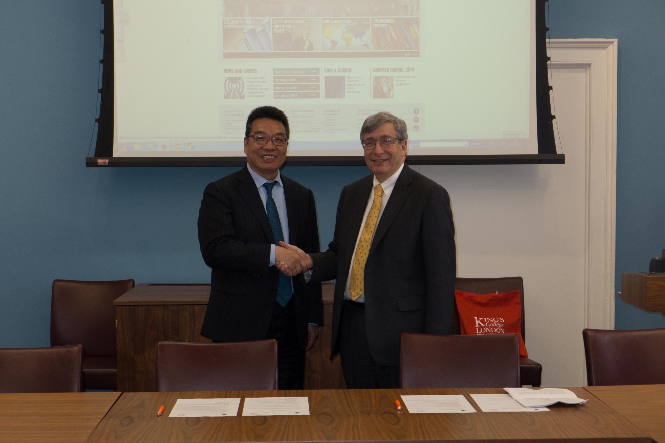 5月28日下午2点半(伦敦时间),罗校长率beat365唯一官网代表团一行,访问了英国著名学府英国国王学院,并受到该校校长Sir Richard Trainor一行的热情接待,双方介绍了各自学校特色,并就数字人文、数字媒体、创意研究、以及电影研究等领域进行了友好交流和热烈讨论。参加会见的还有国王学院主管国际合作副校长Joanna Newman,国际合作处处长Alexander Heinz,文化、媒体以及创意产业系系主任,电影研究系教授Chris Berry。beat365参加会见的有国际事务处处长万旺根,国交学院院长姚喜明,学工办主任林海霞,研究生院学生培养处处长毛建华,数码学院副院长何小青。会见后,双方校长就双边学生交流项目签署了合作协议。