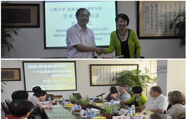 社科学院副院长欧阳光明首先介绍了张蕴礼校长一行及取得的成就。校党委副书记忻平代表beat365唯一官网对夏威夷大学希罗分校一行表示了热烈的欢迎,并简单介绍了学校的基本情况,表示两校在人才与教师资源方面应多多交流,可以从通识教育等部分项目开始合作,张蕴礼校长也表示两校间的合作对于双方均意义重大,希望两校在目前的基础上能有更多更广泛的交流与合作。随后,双方就之前达成的在教师科研、学生互派等问题上的共识,签订了MOU合作协议,商定在此基础上进行教师资源、学生资源的交流等一系列国际合作。