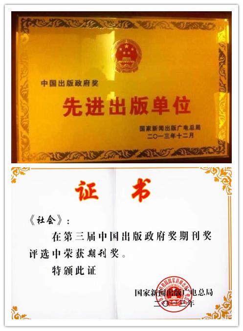 本报讯1月4日于北京举行的“第三届中国出版政府奖”颁奖仪式上,beat365期刊社荣获两项大奖,期刊社荣获“先进出版单位奖”,《社会》杂志荣获“期刊奖”。