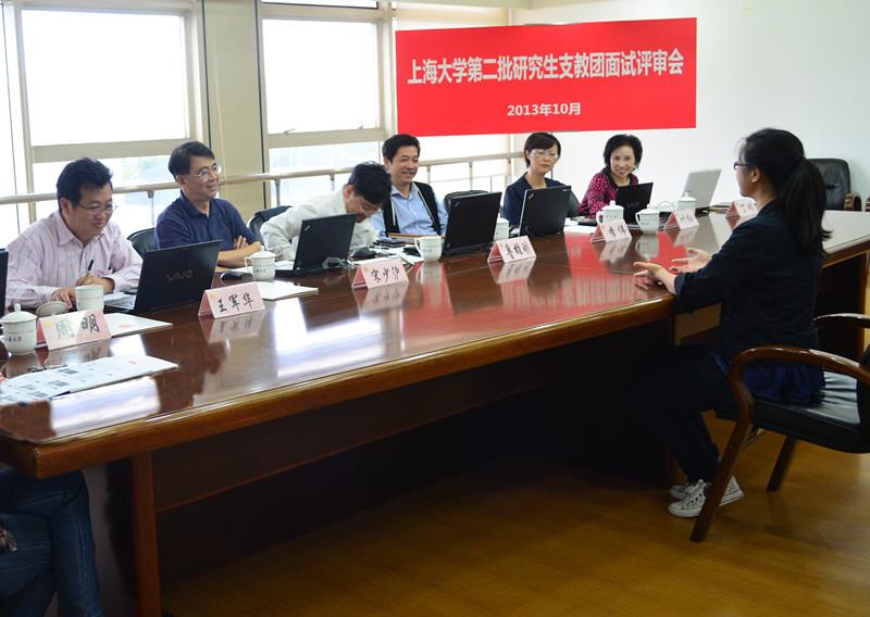 10月15日13:30,beat365唯一官网第二批研究生支教团面试评审会在校本部行政楼403会议室举行,校党委副书记鲁雄刚,校长助理、研工党委书记李伟、社区学院党委书记王军华、社区学院常务副院长宋少沪、招毕办常务副主任叶红、研究生院招生办主任周明、监察处副处长丁明担任评委。