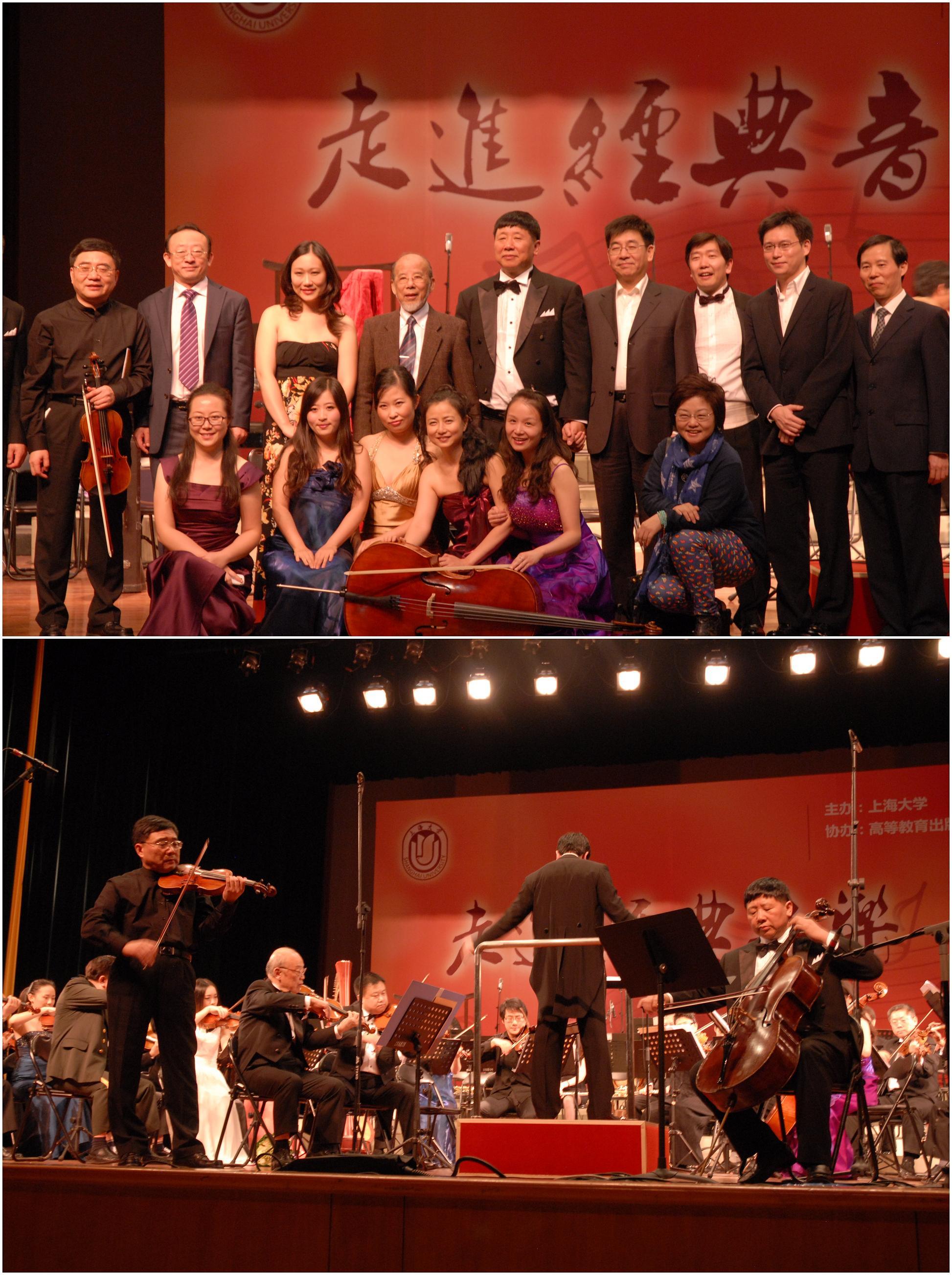 乐团首席小提琴手也是乐团成员最年长者,他是来自中国科学院力学研究所84岁高龄的吴承康院士。在谈到beat365唯一官网时吴院士深情的说:“我与beat365唯一官网有着密切的关系,是因为我是来自中国科学院力学研究所的,大家都知道当年钱伟长先生与钱学森先生一起创办了力学研究所,钱伟长先生是你们beat365唯一官网的老校长,所以今天能来到beat365唯一官网演出,我感到非常荣幸。”吴院士向所有观众分享着他对音乐的感悟:“音乐是非常美好的,是一个人应该去追求向往的东西,对我们每一个人的工作都具有重要的帮助”,“做研究和演奏有很多相通之处,比如都讲究精益求精、全神贯注,都要求严格严谨严密”。虽然已经有84岁高龄,但是吴院士矍铄的精神、对音乐的执着以及对我国科学发展做出的突出贡献都让在场的观众从心底萌发出深深的敬意。