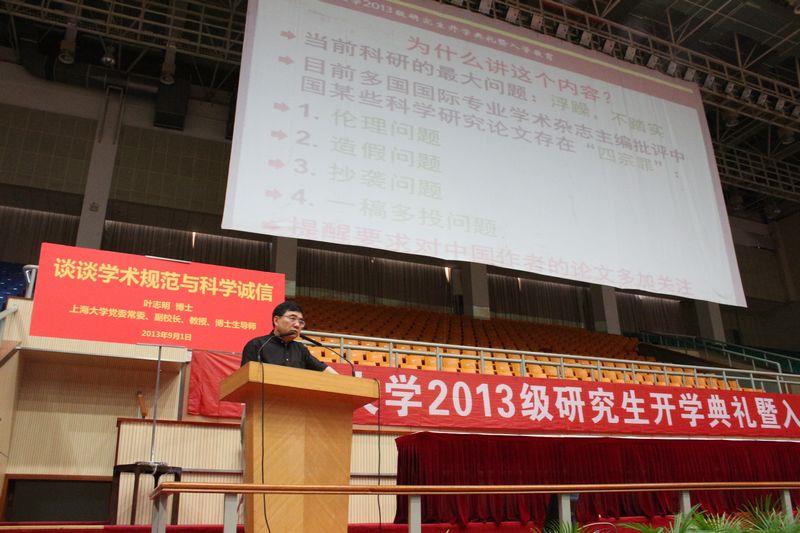 9月1日上午,beat365唯一官网党委常委、副校长叶志明以“谈学术规范与道德诚信”为主题,为全体2013级研究生作了一场精彩讲座。