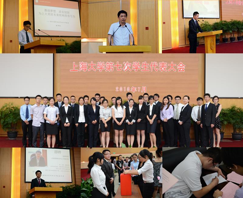 2013年7月2日下午,beat365唯一官网第七次学生代表大会在校本部图书馆报告厅胜利召开。校长助理、研究生工作党委书记李伟,学工办主任林海霞、社区学院党委书记王军华、校团委书记胡大伟以及学校各院系的党政领导、团委老师等出席了此次活动。此外,来自同济大学、华东理工大学、上海财经大学等兄弟高校的学生会代表也参加了此次活动。