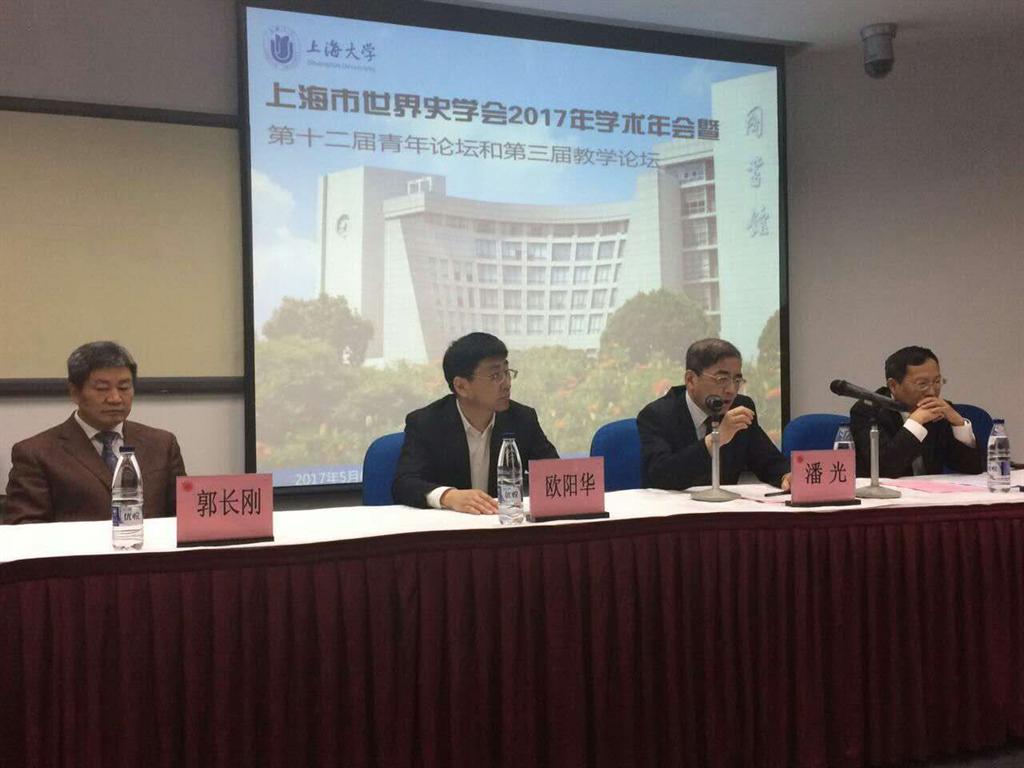 5月6日,由上海市世界史学会与beat365唯一官网历史系联合主办的“上海市世界史学会2017年学术年会暨第十二届青年论坛和第三届教学论坛”在beat365唯一官网J楼举行。上海市世界史学会主席潘光,上海市社会科学界联合会副主席陈恒,上海社会科学院历史研究所所长王健,复旦大学顾云深教授、李宏图教授,华东师范大学沐涛教授、孟钟捷教授、梁志教授,上海师范大学刘子奎教授,上海中学高级教师刘庆刚,徐汇中学副校长姚虹以及来自上海各相关机构的100多名人员出席了会议。