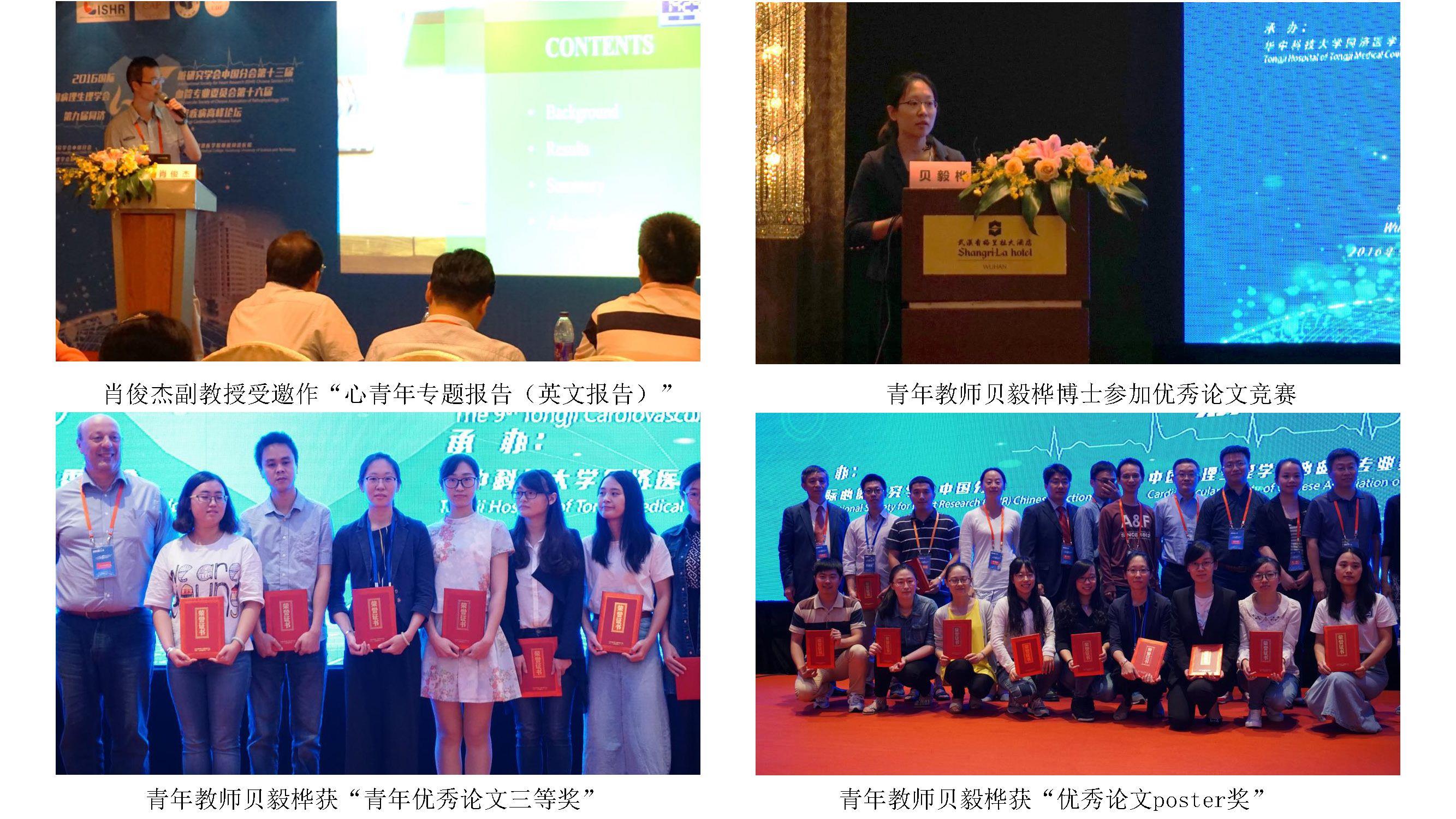2016年9月21日-9月25日于武汉举行的2016国际心脏研究学会中国分会第十三届会议、中国病理生理学会心血管专业委员会第十六届会议上,我院肖俊杰副教授当选为中国病理生理学会心血管专业委员会青年工作委员会委员、国际心脏研究学会(ISHR)中国分会青年工作委员会委员以及ISHR中国转化医学工作委员会委员。