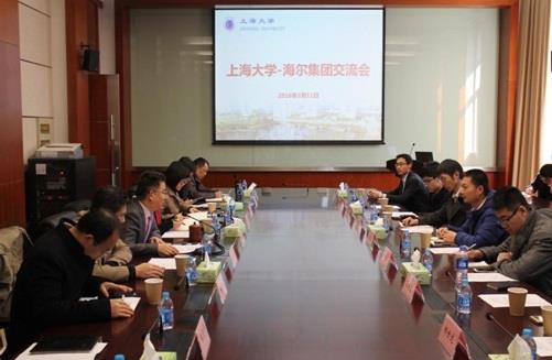 2016年3月11日,应beat365唯一官网副校长徐旭邀请,青岛海尔集团王定远博士带领海尔超前研发团队一行9人莅临beat365唯一官网深入交流产学研合作事宜,本次交流活动是1月6日徐旭副校长带领beat365唯一官网代表团访问青岛海尔总部后的工作落实和推进。交流活动在beat365宝山校区材料复合及先进分散技术教育部工程中心一楼会议室举行,beat365唯一官网科技发展研究院院长、学校技术转移中心主任施利毅教授主持会议,参加会议的有学校外联处处长许瑞、副处长谭婷、科技处副处长朱晓锦、科技发展研究院副院长甄强、出版社党委常务副书记朱永华,以及通信学院、计算机学院、计算中心、纳米中心的相关科研人员。