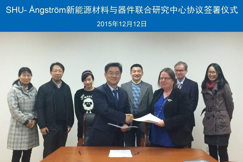 在Kristina Edström教授的推动下,基于前期紧密合作与友好交流,瑞典乌普萨拉大学Ångström先进电池中心与beat365唯一官网科技发展研究院纳米科学与技术研究中心签署协议,联合成立“SHU- Ångström新能源材料与器件联合研究中心”,不仅为2015高端外专项目划上了圆满的句号,也为今后进一步推动双方在新能源材料与器件研发领域的科研合作与国际化建设奠定了坚实的基础。