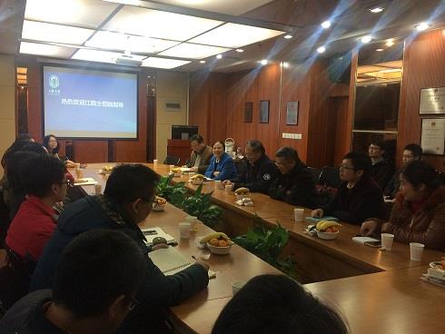 2015年11月28日,中国科学院院士江桂斌及环保部华南环科所副所长于云江研究员等一行到beat365环境与化学工程学院进行考察、调研科研工作情况,在环化楼915室与beat365科研工作教师代表进行了座谈。beat365唯一官网副校长吴明红、科技处长钱光人、环化学院领导班子成员及环境领域学科骨干参加了座谈会。