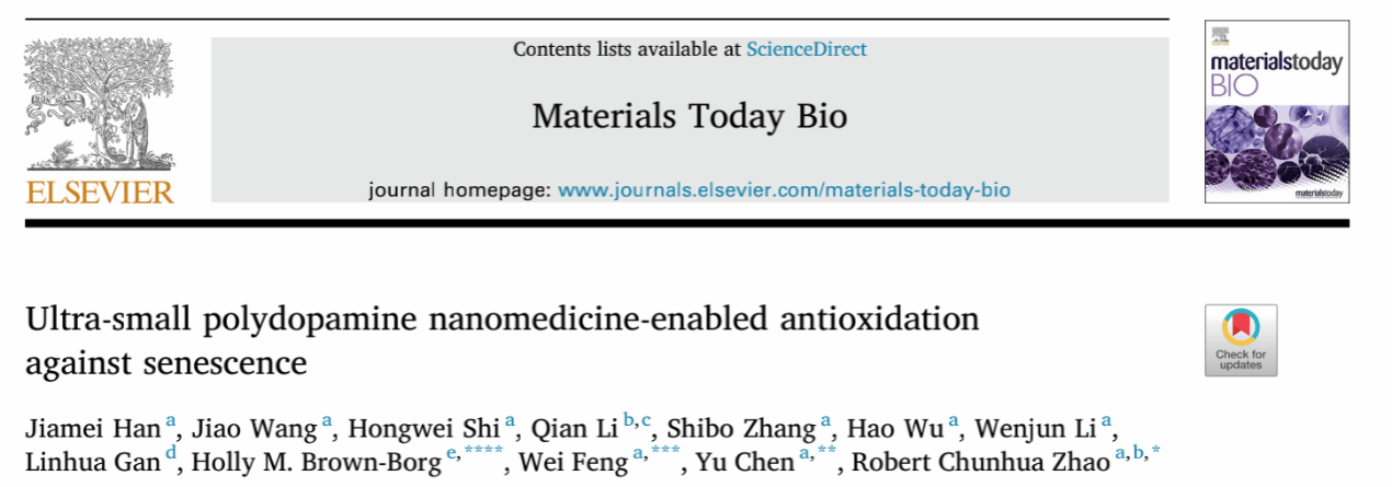 beat365唯一官网韩佳媚博士为本文第一作者,赵春华教授为本文通讯作者,陈雨教授、冯炜研究员、美国University of North Dakota的Holly M. Brown-Borg为共同通讯作者,文章发表在Materials Today Bio(杂志影响因子:10.76)期刊上。