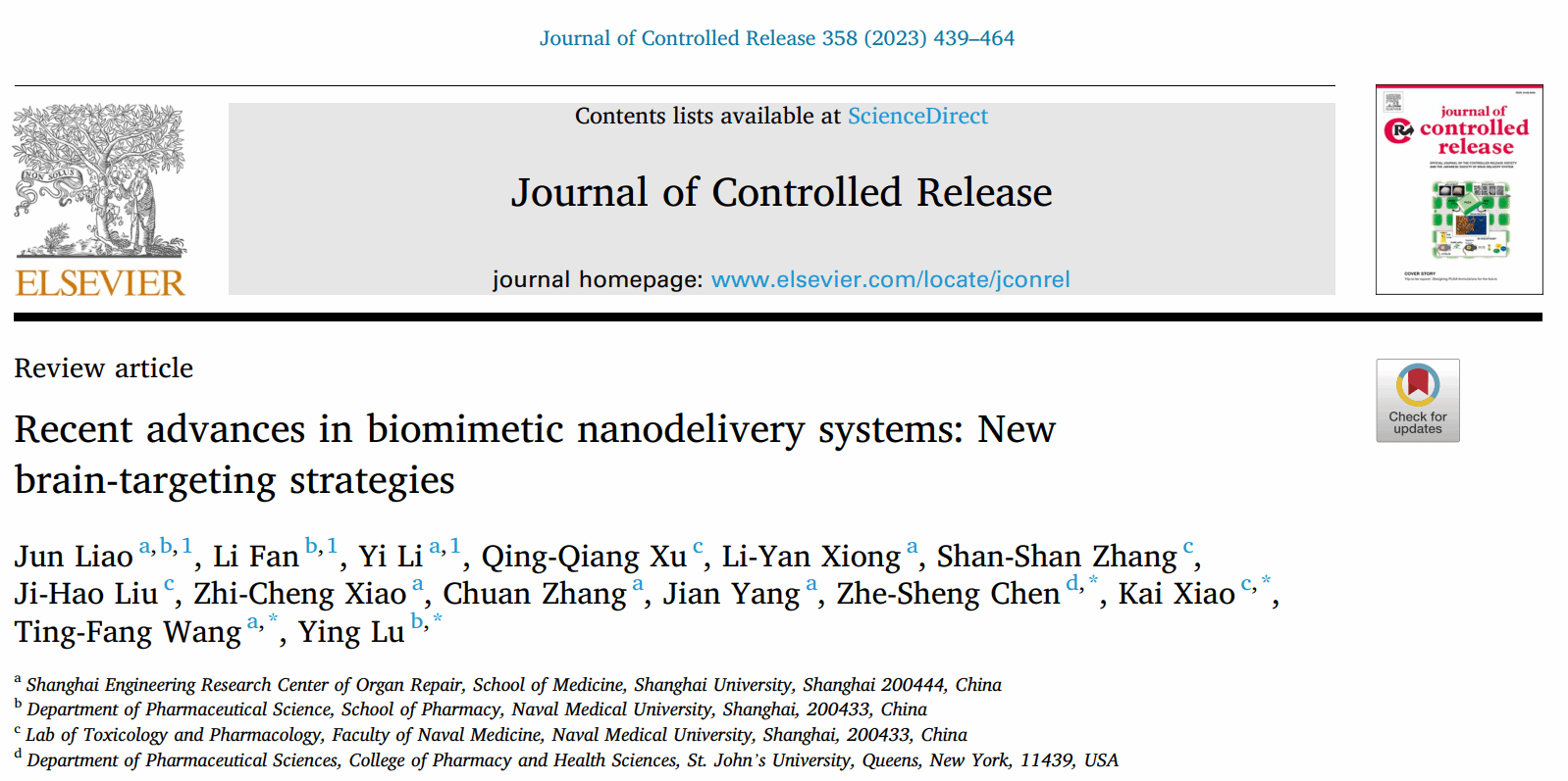 近日,医学院张川教授团队在药剂学领域国际顶级学术期刊《Journal of Controlled release》(国际控制释放学会的官方学术杂志,药物递送领域Top期刊,中科院1区TOP期刊,IF=11.467)上发表题为“Recent advances in biomimetic nanodelivery systems: New brain-targeting strategies”的综述论文。