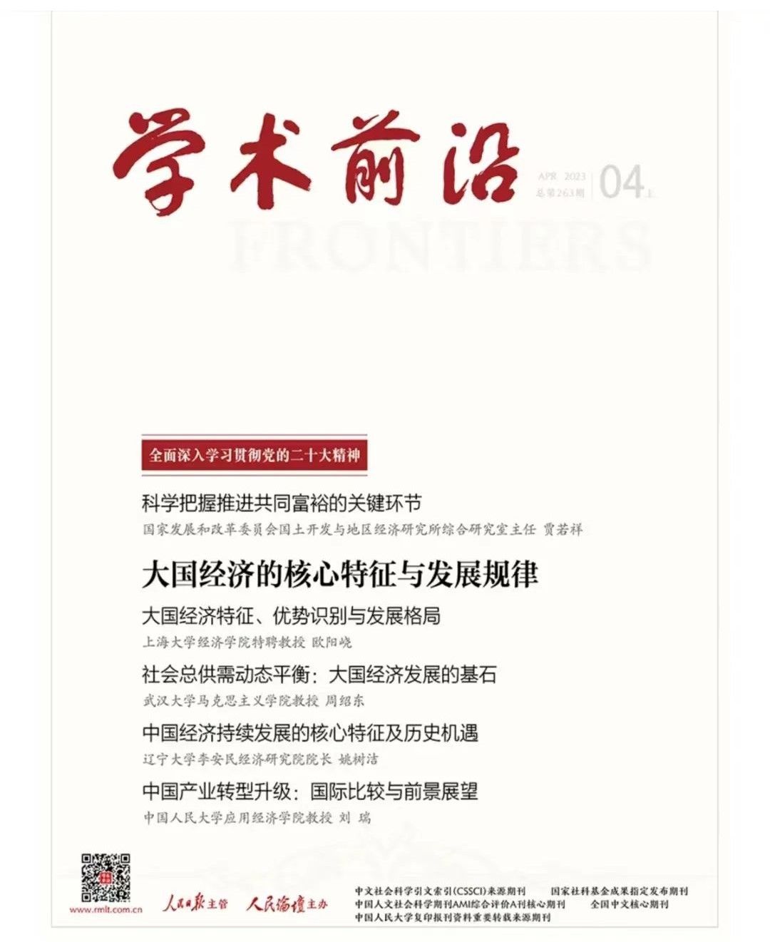 beat365唯一官网经济学院特聘教授、大国经济研究中心主任欧阳峣在人民日报社主办的《学术前沿》2023年第4期发表学术论文《大国经济特征、优势识别与发展格局》。该文回顾了发展经济学的理论脉络,认为中国经济学家将国家规模因素纳入发展经济学理论框架,系统研究大国的概念界定、经济特征、经济优势、战略模式和发展格局,从而使发展经济学理论进入新境界和新形态。欧阳峣教授在文中提出,大国经济特征是由初始特征、基本特征和典型特征组成的多层次结构,其与大国经济优势、大国经济发展格局之间具有必然的逻辑联系。要根据中国经济的特征、优势和规律,在新发展格局中实施扩大内需战略,加快建设现代化产业体系,建设全国统一的和有序的大市场,集聚全球优质要素培育国内大产业和大企业,选择高水平产业和产品进入全球价值链高端。