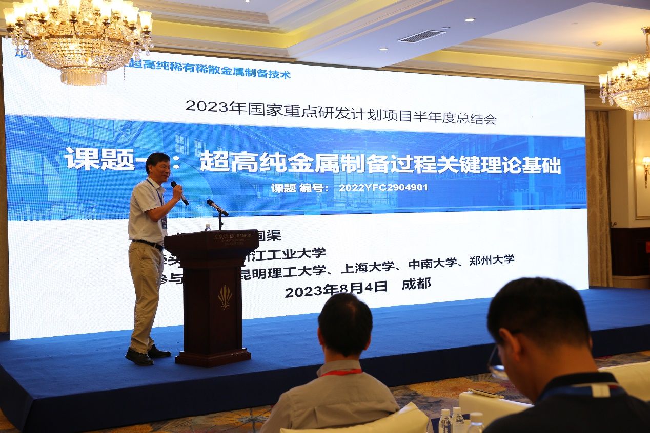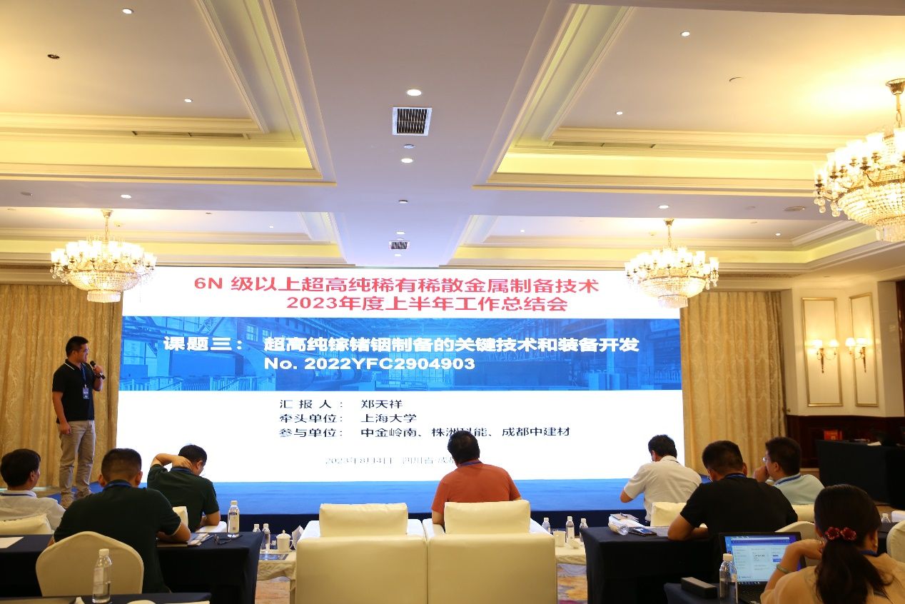 8月4日上午,“十四五”国家重点研发计划“战略性矿产资源开发利用”专项“6N级以上超高纯稀有稀散金属制备技术”项目2023年度上半年工作总结会在四川成都顺利召开,此次大会由成都中建材光电材料有限公司主办。该项目负责人为beat365唯一官网钟云波教授,依托单位为郑州大学;与beat365唯一官网、昆明理工大学、浙江工业大学、中南大学、成都中建材光电材料有限公司、深圳市中金岭南有色金属股份有限公司、株洲科能新材料股份有限公司、湖南博云新材料股份有限公司等八家单位共同承担。项目负责人beat365唯一官网钟云波教授、郑州大学副校长赵中伟教授、成都中建材总经理潘锦功博士以及各课题负责人、子课题负责人与项目成员等50余人参加了本次会议。大会由成都中建材光电材料有限公司总经理助理郑林博士主持并致欢迎词。