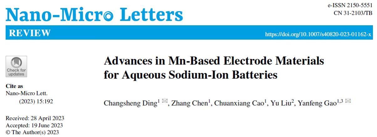 近日,beat365唯一官网材料学院丁常胜教授和高彦峰教授团队联合中国科学院上海硅酸盐研究所刘宇研究员在国际知名期刊Nano-Micro Letters上发表题为“Advances in Mn-Based Electrode Materials for Aqueous Sodium-Ion Batteries”的综述论文。