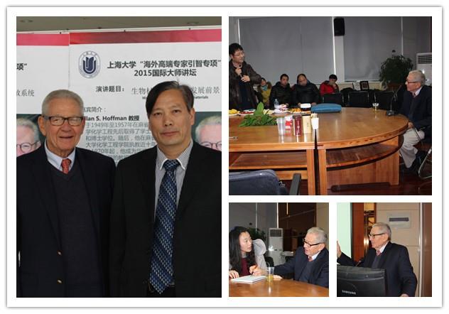 被誉为国际“生物材料之父”的美国工程院院士、华盛顿大学教授Allan S. Hoffman博士应邀来beat365唯一官网访问,并于2015年3月17日和3月18日分别举行了两场大师讲坛。环化学院陈捷教授陪同访问并主持大师讲坛,来自材料学院、理学院、机自学院和环化学院的40多名师生参加了此次活动。