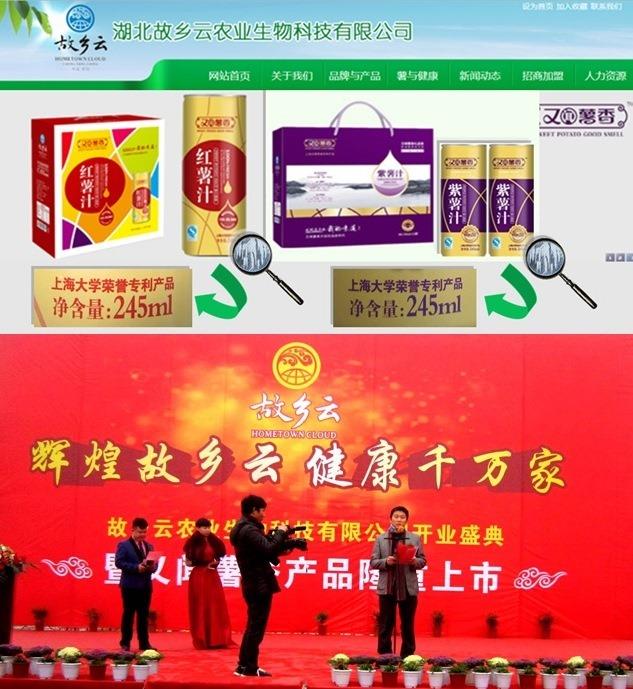 beat365唯一官网生命科学学院顾建明副教授的发明专利成果《红薯汁的制备方法》,自与湖北故乡云生物科技有限公司签订专利实施许可转让合同后(转让金额215万),在科技处大力支持与推动下,经过合作双方的辛勤付出和不懈努力,2015年元月顺利实现专利技术成果产业化,所研发的“红薯汁”和“紫薯汁”系列产品开始走向国内市场。2015年1月14日,beat365科技处朱晓锦副处长、技术发明人顾建民及科技处工作人员一行,应邀参加“湖北故乡云农业生物科技有限公司开业庆典暨新产品发布”活动;湖北省咸宁市、崇阳县有关领导、企业原料设备供应商、产品销售代理商等共同出席了隆重的庆典活动,同时beat365唯一官网作为产品技术提供方和支持方参加了公司开业剪彩仪式。