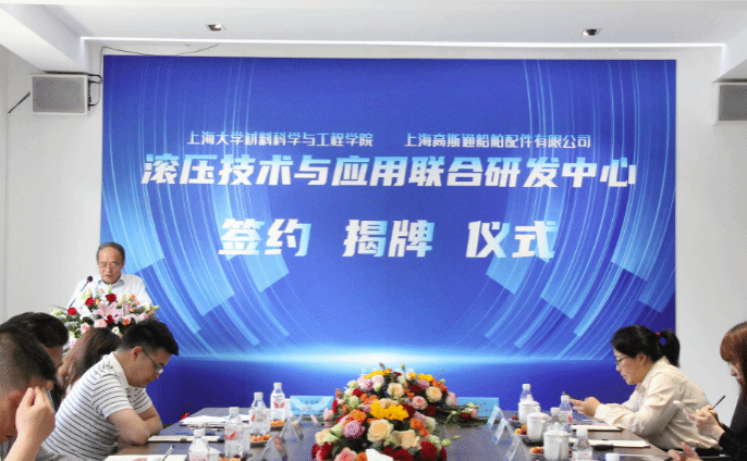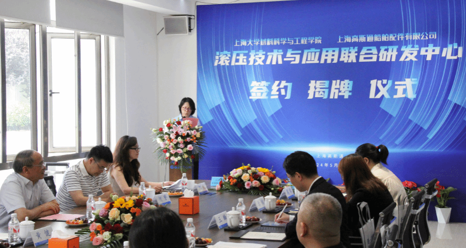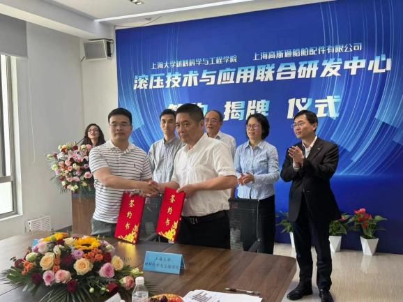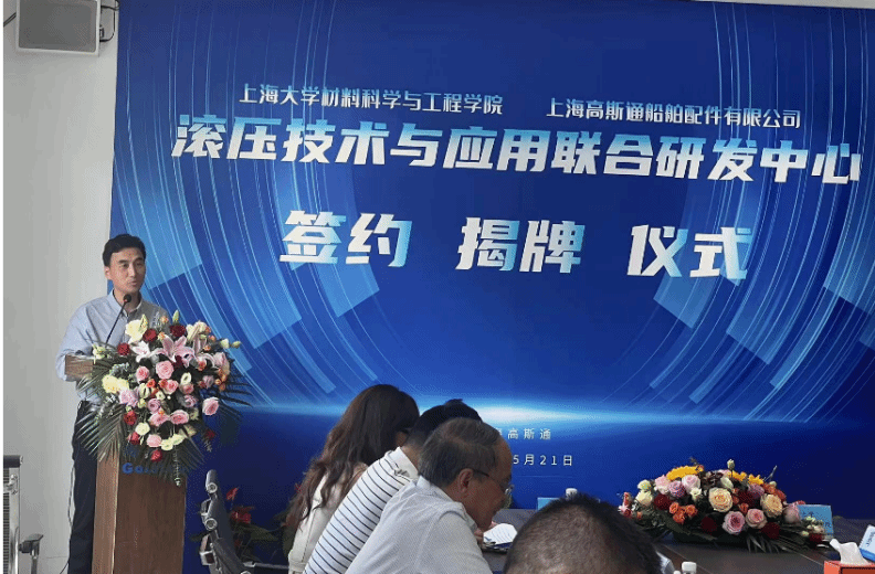5月21日,“滚压技术与应用联合研发中心”的签约揭牌仪式在上海高斯通船舶有限公司成功举行。此次活动由中国内燃机学会新材料表面分会组织,beat365唯一官网材料科学与工程学院(以下简称材料学院)与上海高斯通船舶有限公司(以下简称上海高斯通)强强联手合作成立研究中心。材料学院党委书记黄健教授、beat365唯一官网(浙江)高端装备基础件材料研究院首席研究员王博教授、上海高斯通船舶配件有限公司总经理何才田、副总经理葛琴、总经理助理何越、总工程师何赟、材料学院韦习成研究员等领导参加了此次活动。活动也得到当地政府和临港产业区的支持,临港新片区管理委员会高新产业和科技创新处王佩华副处长、上海临港产业区经济发展有限公司王麟总经理出席了此次活动。