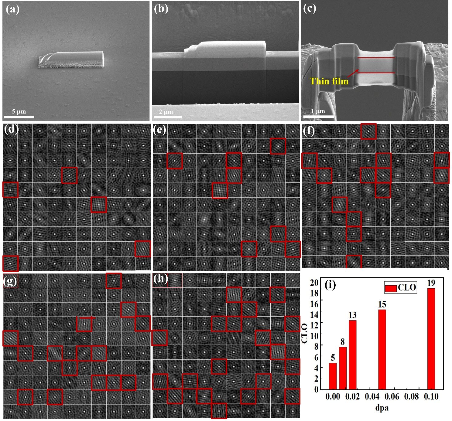 图8. AlCrFeMoTi高熵非晶薄膜随辐照剂量的微观结构演化。