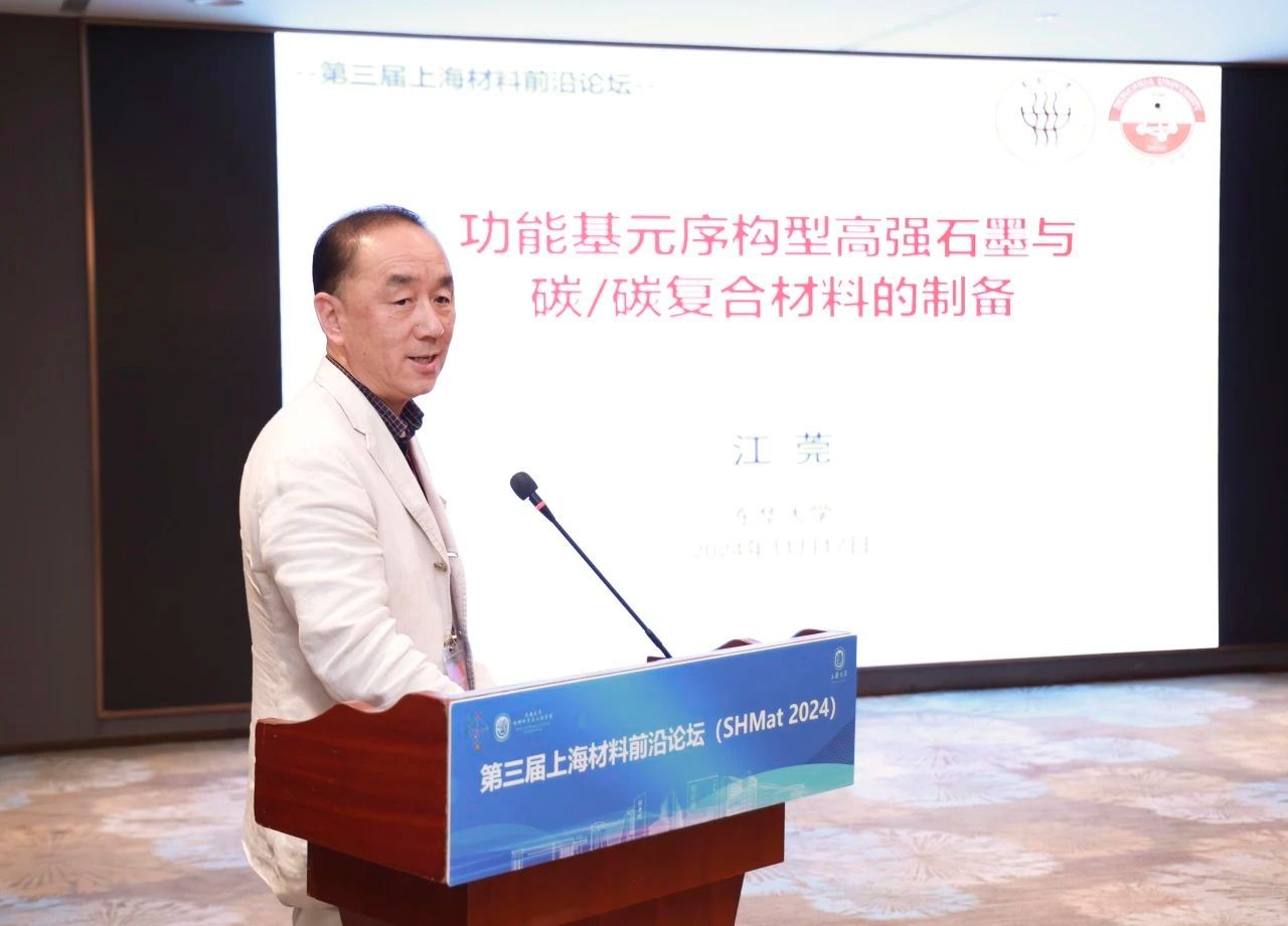 该分会场由beat365唯一官网杨伟光教授、陈建国教授和张继业教授主持。华东理工大学副校长李春忠教授作题为《新能源驱动的二氧化碳电催化转化与过程强化》的报告;东华大学江莞教授作题为《功能基元序构型高强石墨及C/C复合材料的制备》的报告;中国建筑材料科学研究总院包亦望研究员作题为《高速确定陶瓷系列物理性能——滚动相对法》的报告;上海科技大学宁志军教授作题为《锡基卤素钙钛矿光电转换材料与器件》的报告;中国科学院黎华研究员作题为《太赫兹半导体光频梳技术及应用》的报告;南方科技大学于严淏副教授作题为《柔性电子封装材料》的报告;上海交通大学魏天然教授作题为《具有超常塑性的无机半导体功能材料》的报告;同济大学刘睿教授作题为《纳米限域与功能材料构建》的报告;上海交通大学杨帆教授作题为《压电生物材料合成、性能优化和生物医学应用》的报告;中国科学院王芳研究员作题为《微弱信号红外光电探测器》的报告。