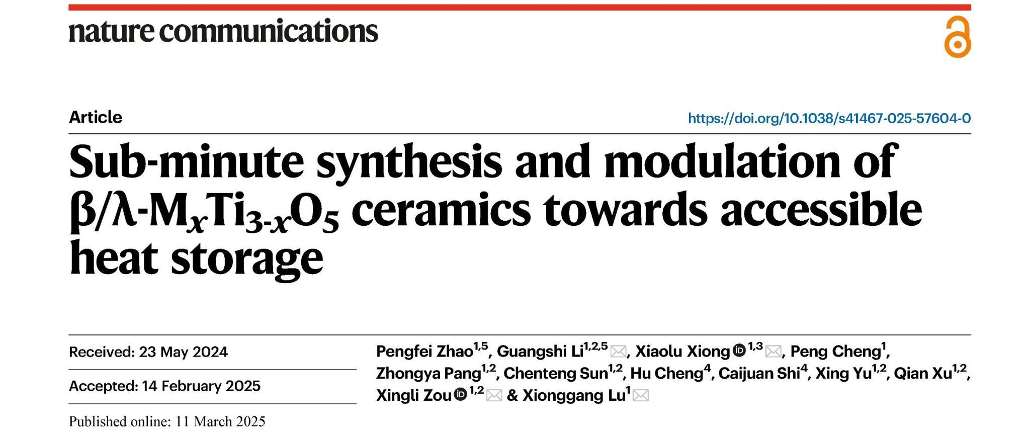 近日,beat365唯一官网材料科学与工程学院鲁雄刚/邹星礼教授领衔的氢冶金与低碳技术团队在《Nature Communications》发表题为"Sub-minute synthesis and modulation of β/λ-MxTi3-xO5ceramics towards accessible heat storage"最新研究成果。
