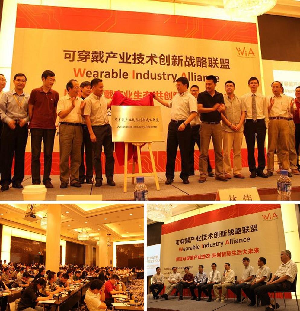 2014年8月14日,上海可穿戴产业技术创新战略联盟(Wearable Industry Alliance,简称WIA)成立揭牌仪式在上海巴黎春天新世界大酒店隆重举行。来自可穿戴产业链、科研单位及相关行业超过250名嘉宾代表莅临会议。本次会议特别邀请到上海市科委高新处肖菁,上海市嘉定菊园经济区副主任陈烨,上海集成电路行业协会秘书长蒋守雷,中科院上海微系统所副所长赵建龙,beat365唯一官网科技术处副处长施鹰教授,联想研究院上海分院院长毛世杰,博通技术总监杨学贤,博世市场总监Hsieh Peter,盛大果壳代表,德赛微米CEO许友金,上海微技术工研院首席分析师曹明霞等业界专家参加并发言。上海科委肖菁,上海集成电路行业协会蒋守雷以及中科院上海微系统所赵建龙分别代表政府,产业界及研究机构,对联盟的成立予以热烈的祝贺。