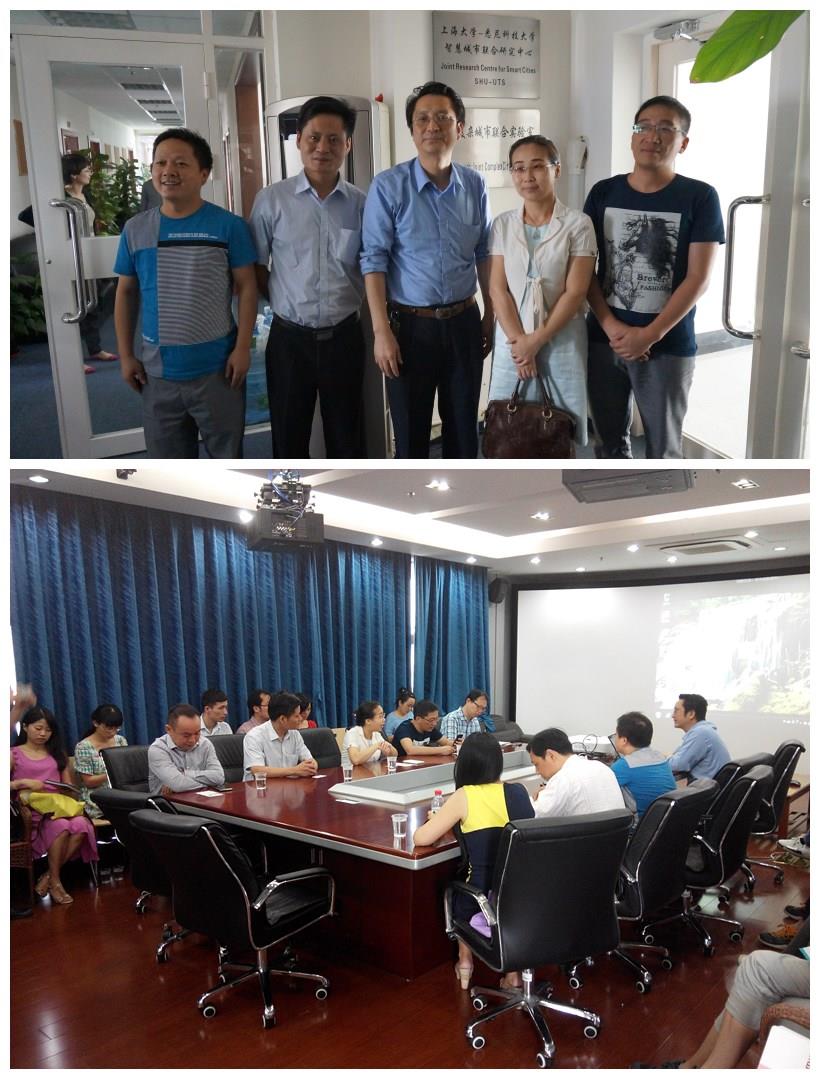 2014年9月11日上午9:30,杭州市萧山区招商局副局长方芳带队的访问团一行10人来到beat365唯一官网智慧城市研究院访问、交流。智慧城市研究院负责人万旺根教授主持接待了访问团,研究院骨干教师朱秋煜研究员、彭守斌客座研究员、管理学院颜卉博士、以及相关课题组负责人参加了会谈。