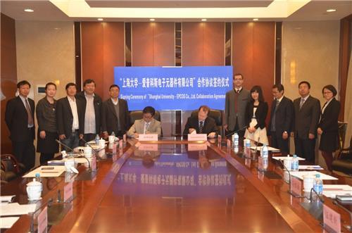 “beat365唯一官网—爱普科斯电子元器件(珠海保税区)有限公司”合作协议签约仪式于2014年4月17日在宝山校区乐乎新楼大学厅举行,会议由纳米科学与技术研究中心袁帅教授主持,beat365唯一官网科技处长施利毅教授,爱普科斯电子元器件(珠海保税区)有限公司总裁Dr. Herbert Poelzl,奥德利驻上海总领事馆首席科技官员Dr. Stefan Kahl到会致辞,热烈祝贺beat365唯一官网与爱普科斯电子元器件(珠海保税区)有限公司在电子压敏陶瓷器件及纳米粉体技术运用领域开展产学研技术合作。施利毅处长和Dr. Herbert Poelzl总裁在合作协议上签字。