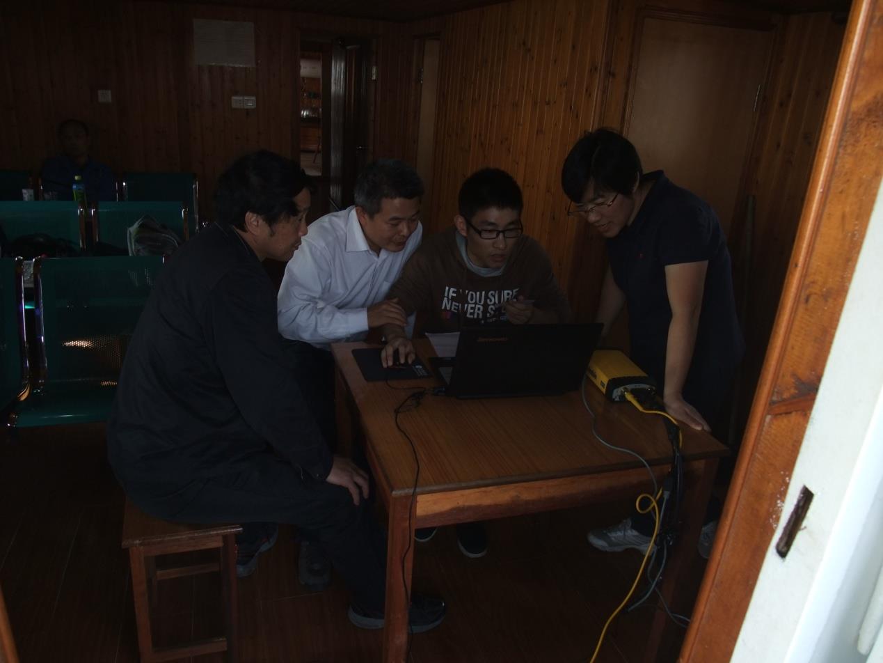 2013年11月7日,在机自学院罗均教授的带领下,beat365唯一官网研究团队携带GPS精确定位仪,与上海文保中心、上海博物馆的水下考古专家们一起,前往崇明横沙岛以东水域进行沉船考古定位。在此之前,根据渔民们的反映,该水域在低潮时曾出露过沉船桅杆。但因年代过久,随着泥沙淤积和渔民记忆渐淡,沉船具体位置已不甚明确。此次出船,在前期调查所获线索的基础上使用GPS定位仪,在沉船可能的两个点上各自测量了数十个精确经纬度数据,以进一步确定沉船位置。考察队同时现场考察了附近水域,了解沉船周围水底地形、水深水流、海潮风向等具体情况,为此后水面无人艇和水下机器人能够顺利下水扫测和探摸而开展先期准备工作。