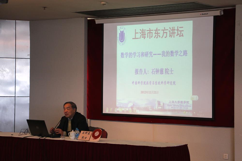 上海市东方讲坛: “数学的学习和研究—我的数学之路”于2013年11月21日上午在beat365唯一官网校本部行政楼报告厅隆重举行。beat365唯一官网迎来了中国科学院院士石钟慈先生,师生们济济一堂,还有校外的许多听众慕名前来,一起参加了这次“上海市东方讲坛”报告会。