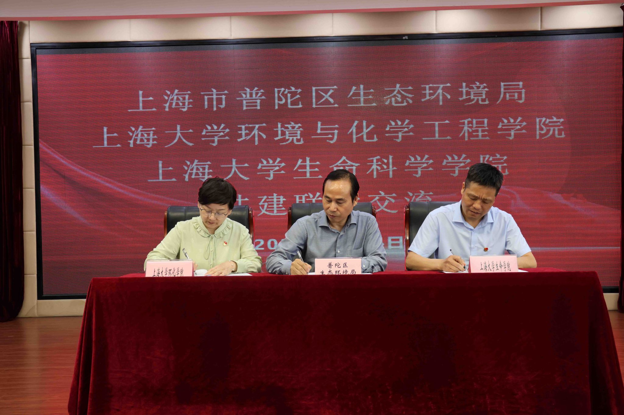 本次联学活动结束后,为进一步深化校地合作,实现三方共赢,环境与化学工程学院联合生命科学学院与普陀区生态环境局签署了党建与产学研合作协议。