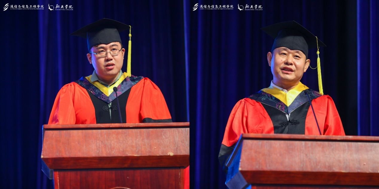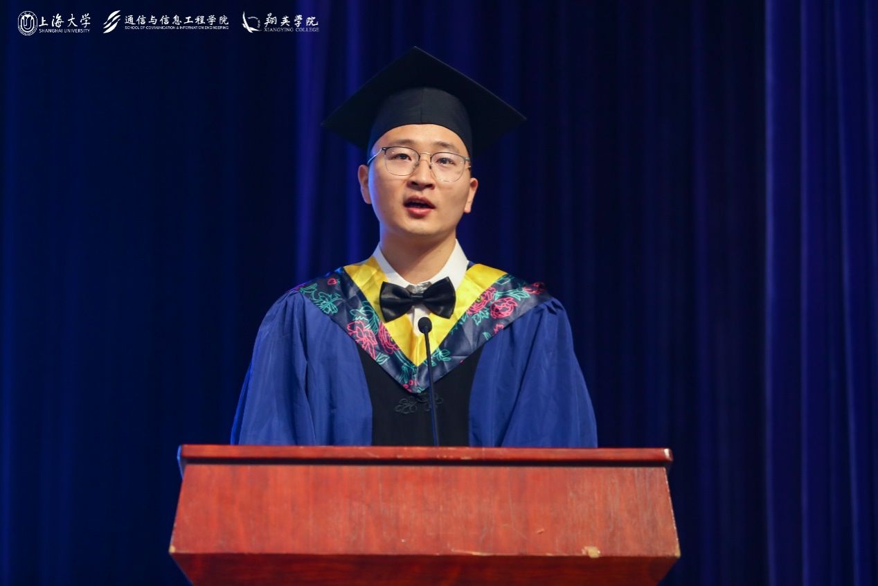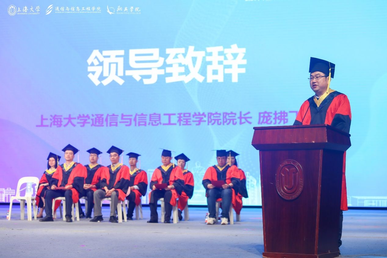 通信学院庞拂飞院长以“源起泮池赤子心,勇踏征程追梦人”为题发表致辞,向701名即将步入社会的通信学子及其家人、教师表达了热烈祝贺与崇高敬意。几载春秋,学子们与学院共成长,收获了上海市研究生教改项目等荣誉,以及国内外竞赛的累累硕果,彰显了通信学院的卓越风采与学子们的蓬勃朝气。庞院长寄语毕业生们,要不忘初心,牢记使命,紧跟科技前沿,服务国家大局;要敢于创新,勇于实践,将理论付诸实践,引领行业革新;要团结协作,共同进步,珍视团队力量,共筑梦想桥梁。