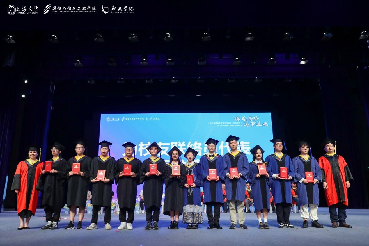 通信学院党委书记黄素娟,院长庞拂飞共同为上海市优秀毕业生和beat365唯一官网优秀毕业生代表颁发荣誉证书。