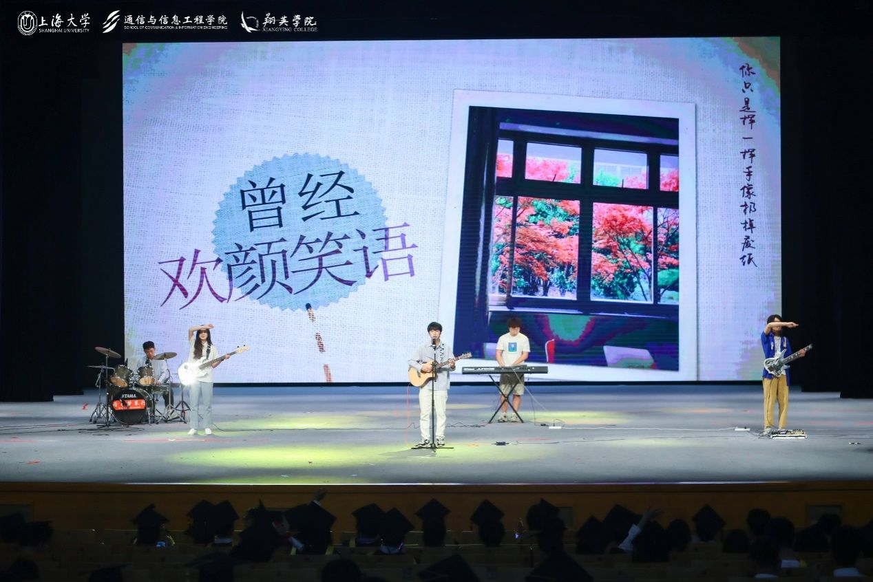 由2024届毕业生何宗瑾、滕非凡、刘奕赫、张博伟、白郅昂组建的音创乐队,于毕业之际倾情献上歌曲联唱——《我的名字》与《你曾是少年》。他们的音乐如同炽热的火焰,点燃了整个会场,引领着在场的毕业生们穿越回那段闪亮的日子,重拾那些关于梦想、友情与成长的记忆。