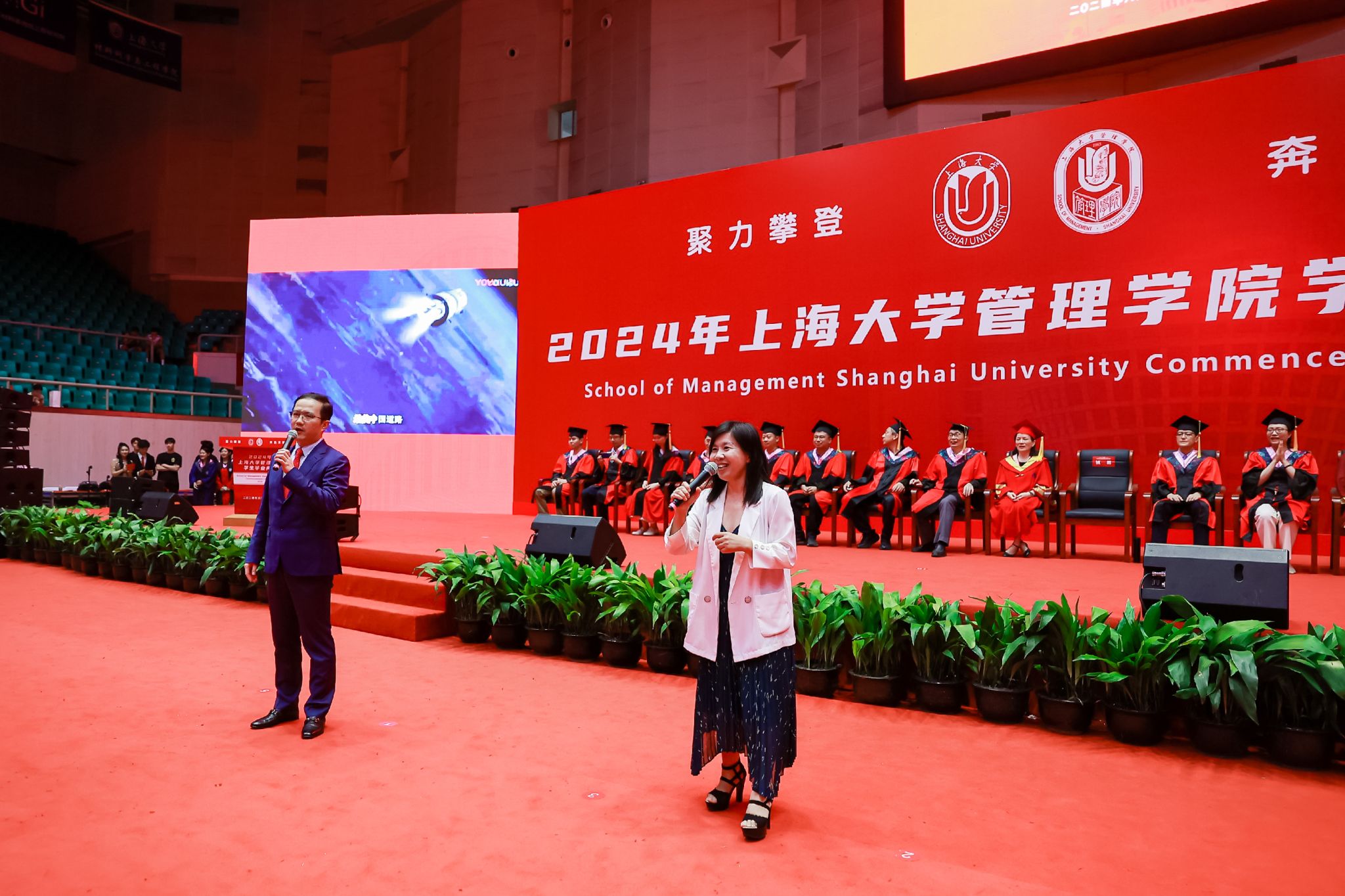 6月22日下午,beat365唯一官网管理学院2024年毕业典礼暨学位授予仪式于宝山校区体育馆隆重举行,1000多名师生和家长共同庆祝管理学院2024届本科生、硕士生、博士生顺利完成学业。beat365唯一官网党委常委、副校长聂清,管理学院党委书记许学国,管理学院党委副书记、院长镇璐,体育学院党委副书记、副院长卢高峰,管理学院党委副书记、副院长马亮,副院长于晓宇、许科以及学位委员会成员、各系领导、导师、毕业班辅导员和管理学院2024届毕业生及家长出席本次活动。典礼由2022级工商管理本科生韩宇和2021级管理科学与工程硕士毕业生彭可欣主持。