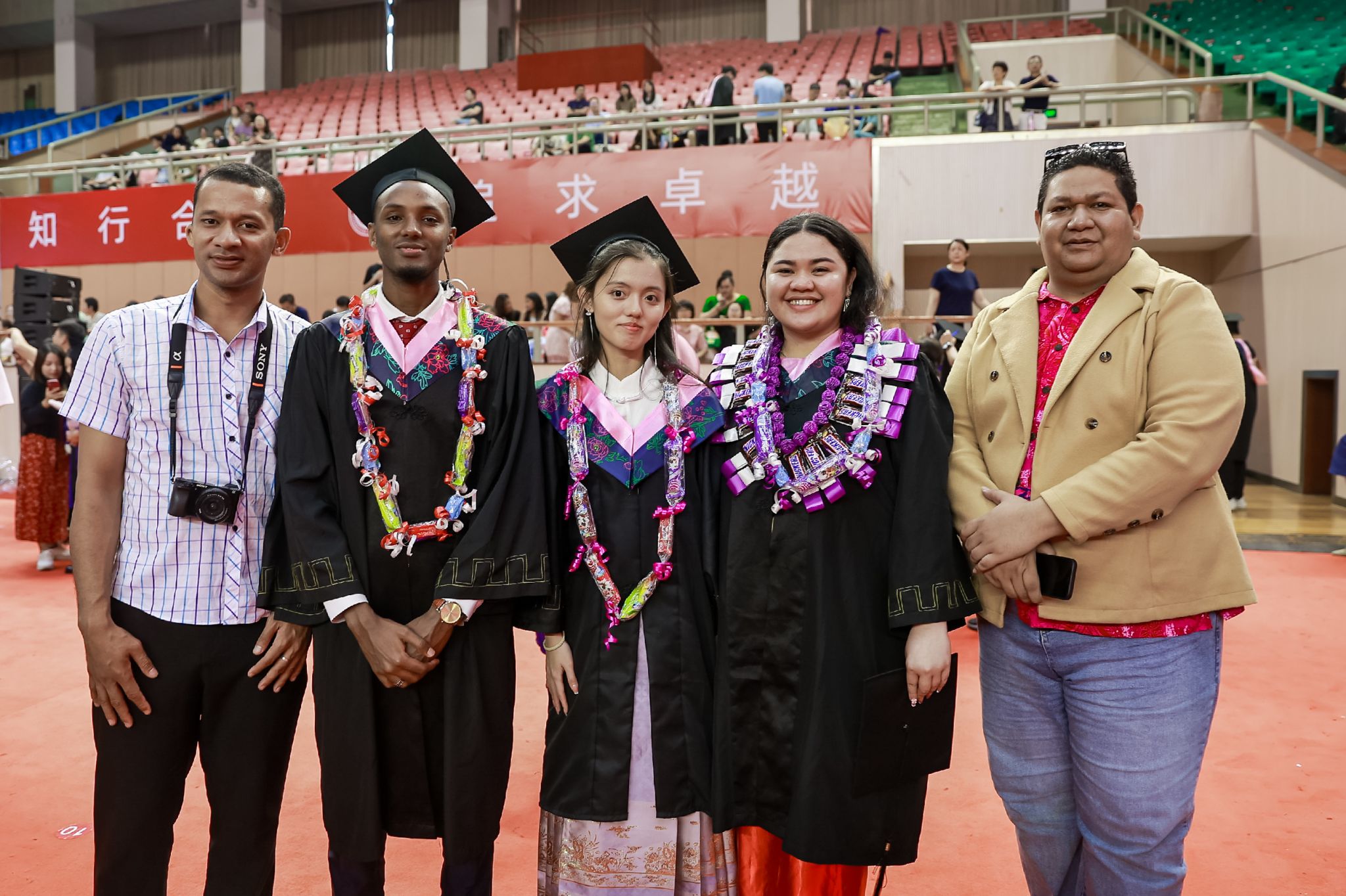 下午两点,典礼准时开始。首先,全体师生起立,奏唱国歌。随后,播放毕业纪念视频《青春不散场》,纪念难忘的求学时光,愿友谊、勇气与热忱如星光永存,激励毕业生们绘就人生更绚丽的篇章。接下来,优秀毕业生代表许宇轩、钟琳、DODONOVA MARINA、王紫茗、祝博艺带来精彩的微演讲《收获希望,放飞梦想》,话语鼓舞人心,催人奋进。少年志在鸿鹄,以梦想为灯,以希望为力,勇往直前,必将跨越困境,实现理想。