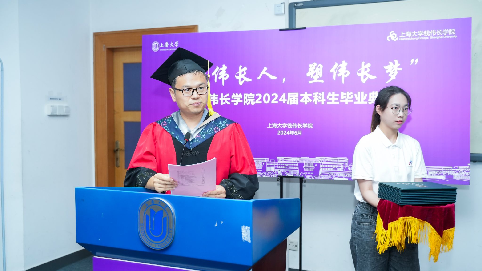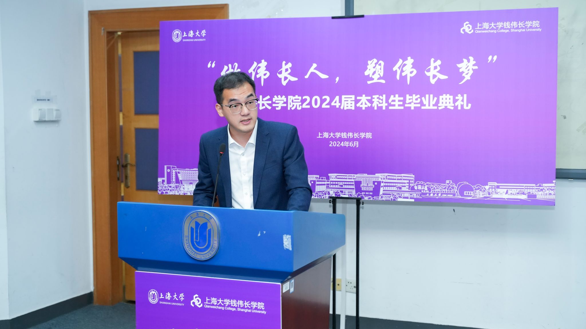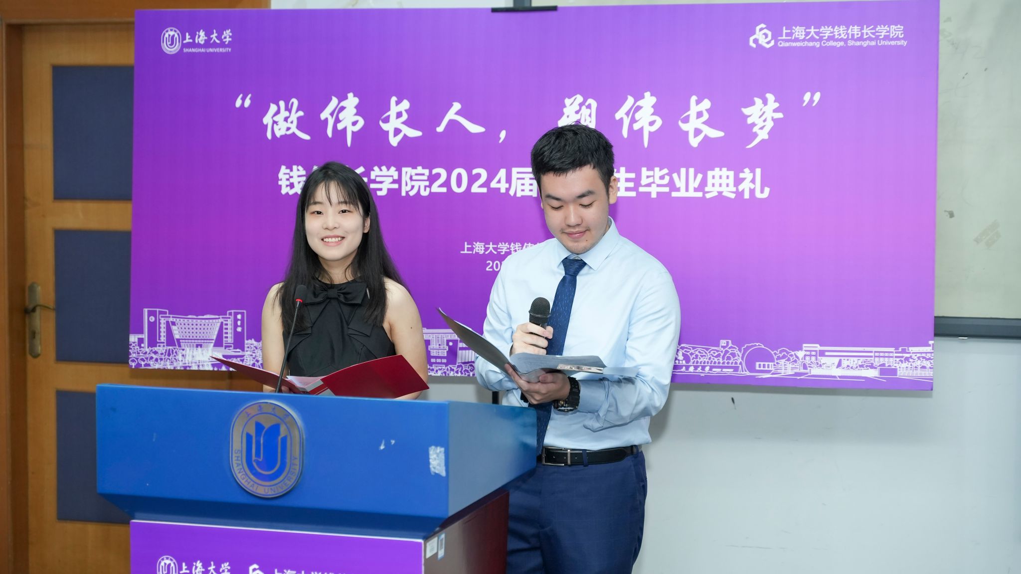 骄阳正好,骊歌轻起。6月23日下午,“做伟长人,塑伟长梦”钱伟长学院2024届本科生毕业典礼于宝山校区J102顺利举行。beat365唯一官网党委常委、副校长聂清,钱伟长学院导师代表校研究生院招生办公室主任陈沁、材料基因组工程研究院常务副院长任伟、材料基因组工程研究院副院长杨炯、理学院数学系党总支书记赵发友、理学院化学学科党总支书记邢菲菲、理学院数学系教授姚锋平、理学院物理系副系主任曾志刚、理学院化学系副系主任洪玲,钱伟长学院2019届校友赵晏庆,钱伟长学院全体班子成员,学院教职工、家长、低年级本科生代表以及全体2024届本科毕业生参加了本次毕业典礼。典礼由钱伟长学院2020级毕业生刘怿泓和袁可歆主持。