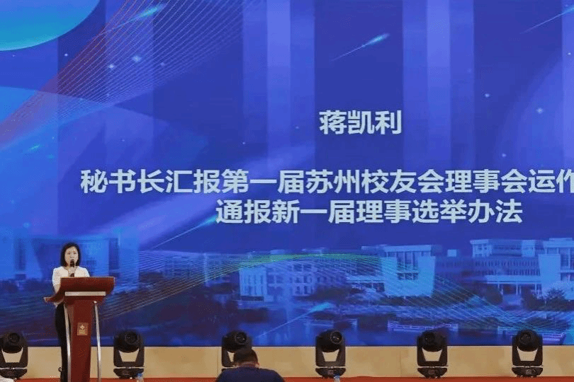 换届大会上,蒋凯利秘书长作beat365唯一官网苏州校友会第一届理事会工作报告。她提到,近年来,苏州校友会的队伍在不断扩大,校友会的组织架构在不断完善,丰富的文体活动也在火热进行中。未来,苏州校友会理事会将以更高的目标,继续完善建设、努力前行。