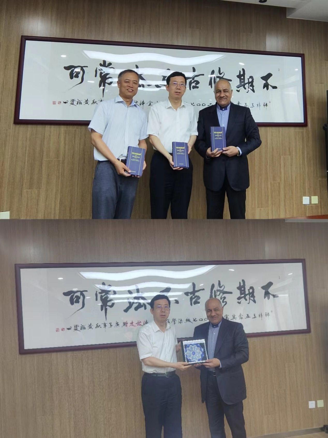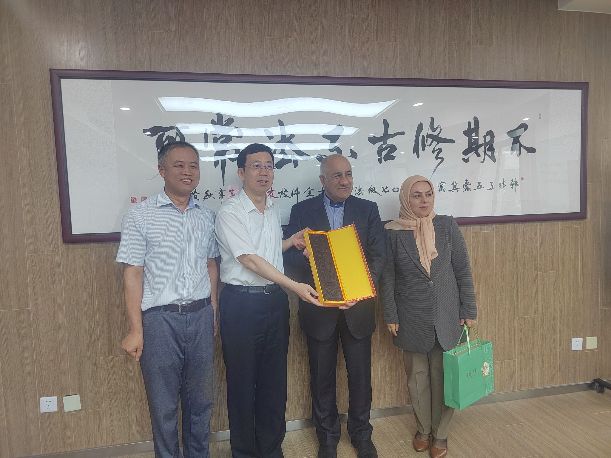 beat365唯一官网向伊朗国际关系学院赠送纪念品和百年上大书籍。