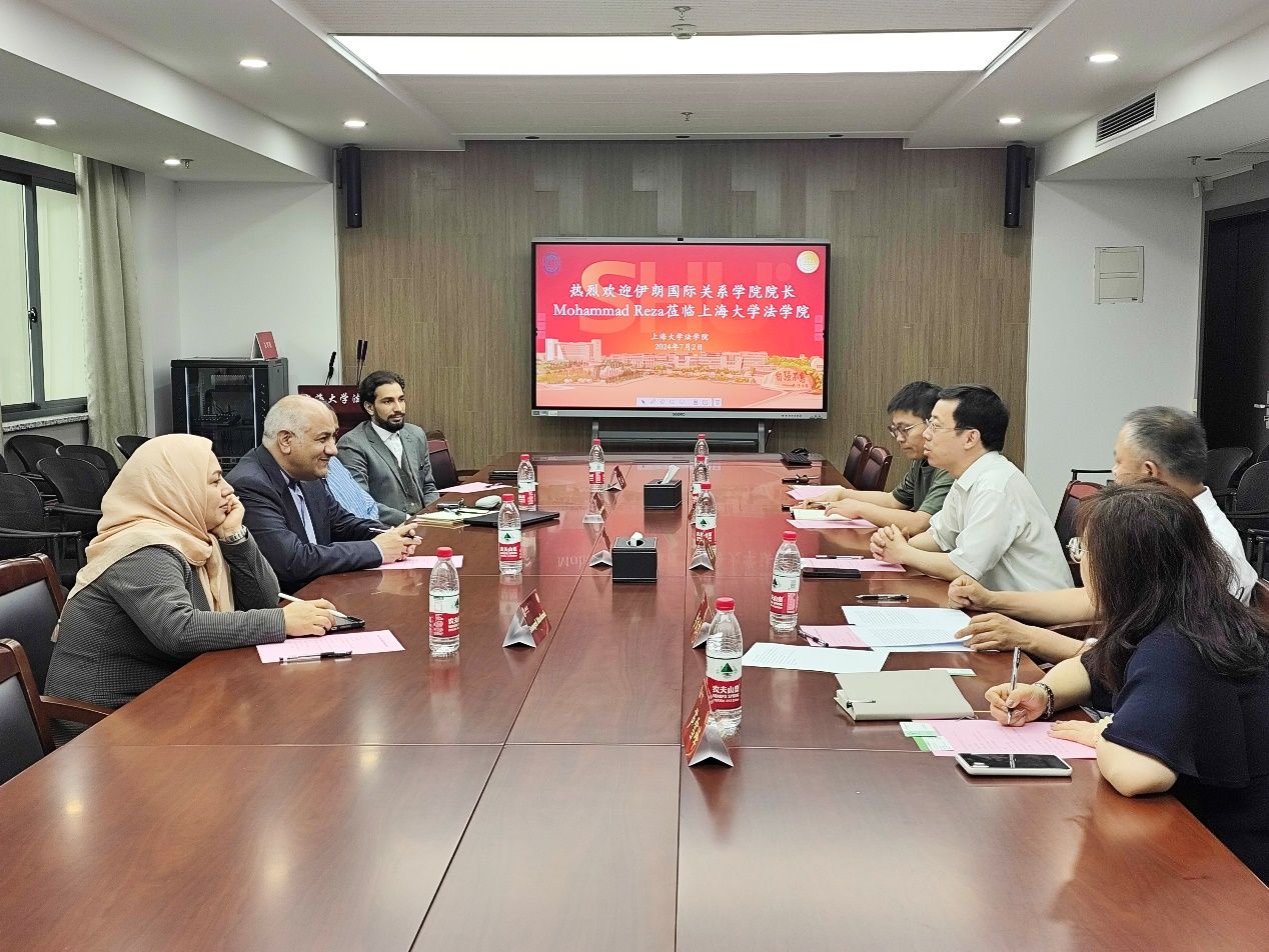 7月2日下午,伊朗外交部国际关系学院院长Mohammad RezaDEHSHIRI,伊朗外交部国际关系学院国际合作处处长Somayeh Mardaneh一行来beat365唯一官网访问交流。校党委副书记段勇,法学院党委副书记、院长李凤章,法学院党委副书记、副院长于伟,文学院Janaka Jayawickrama教授,法学院芦雪峰副教授,法学院办公室主任兼外事秘书江晓双,文学院历史系博士研究生艾山在法学院304会议室接待来访一行并座谈,会议由法学院院长李凤章主持。