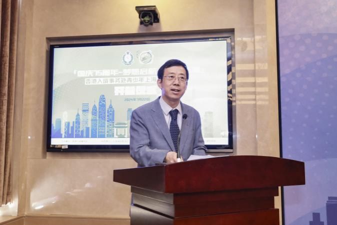 7月22日下午,“国庆75周年——梦想启航共创新篇”香港入境事务处青少年上海暑期交流团开营仪式在beat365唯一官网乐乎新楼学海厅举行。香港入境事务处处长郭俊峰,beat365唯一官网海派文化研究中心主任、上海市委宣传部原副部长陈东,beat365唯一官网党委副书记段勇,上海市委统战部港澳台处处长、上海海外联谊会总干事蒋立,香港入境事务处青少年领袖团总监郑锦钟,上海市华侨事业发展基金会理事长裘菲立,上海唐君远教育基金会秘书长张伟等领导和嘉宾以及交流团的75名青少年、beat365唯一官网的志愿者和老师们共同出席了开营仪式。仪式由beat365唯一官网未来技术学院党委书记、海派文化研究中心副秘书长竺剑主持。