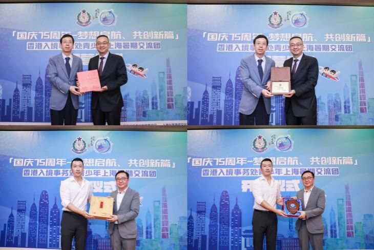 最后,沪港双方互赠了礼物,寓意着两地之间的深厚情谊与美好祝愿。随着开营仪式的圆满举办,“国庆75周年——梦想启航共创新篇”香港入境事务处青少年上海暑期交流团正式拉开帷幕。